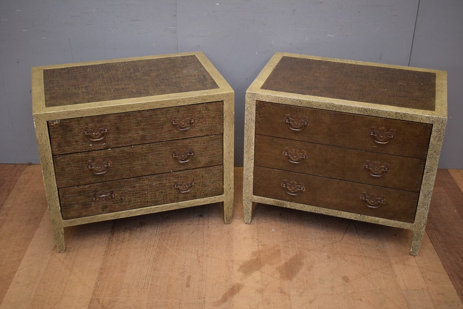 A PAIR OF THREE DRAWER CREAM AND BROWN CHEST OF DRAWERS (A/F) ( 64H X 76W X 51D CM) (PLEASE NOTE THIS HEAVY ITEM MUST BE REMOVED BY CARRIERS AT THE CUSTOMER'S EXPENSE. LEONARD JOEL STAFF CANNOT ASSIST CARRYING THIS ITEM) (X-LARGE ITEM)