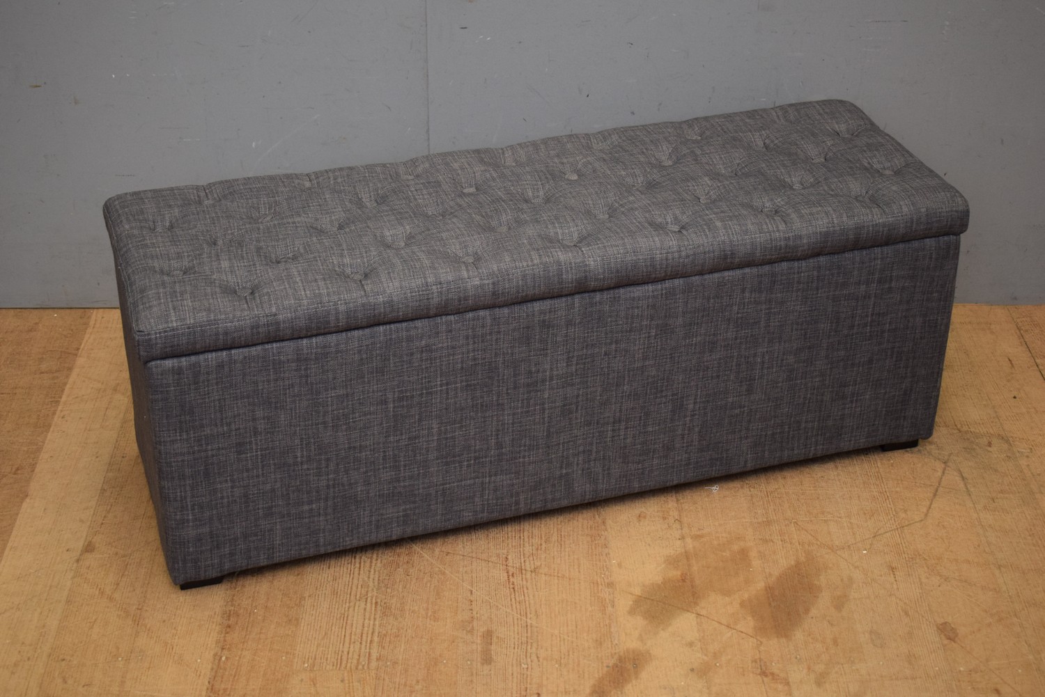 A GREY BUTTONED OTTOMAN ( 45H X 119W X 39D CM) (LEONARD JOEL DELIVERY SIZE: LARGE)