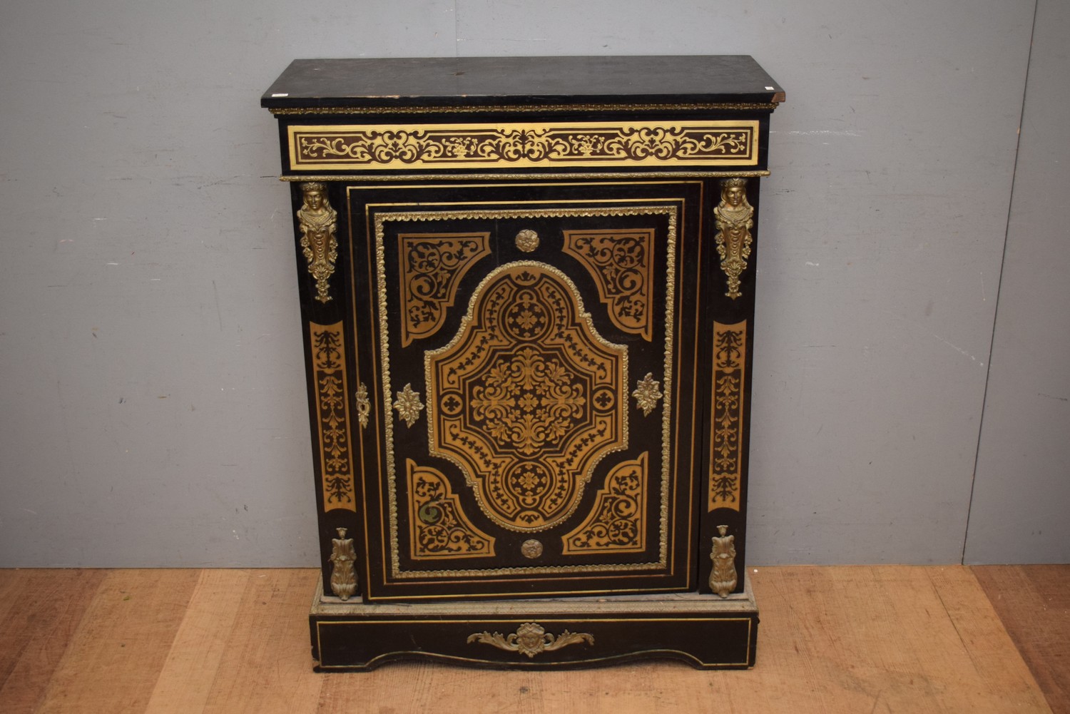 A FRENCH BOULLE SINGLE DOOR CABINET (A/F) (114H x 87W x 37D CM) (LEONARD JOEL DELIVERY SIZE: LARGE)
