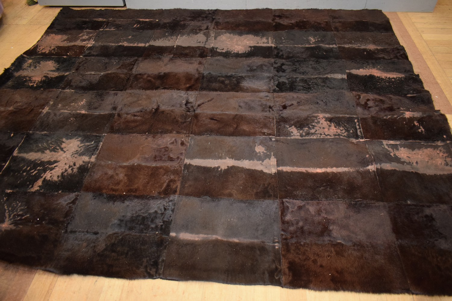 A PATCHWORK HIDE FLOOR RUG (A/F) (307 X 267CM) (LEONARD JOEL DELIVERY SIZE: LARGE)