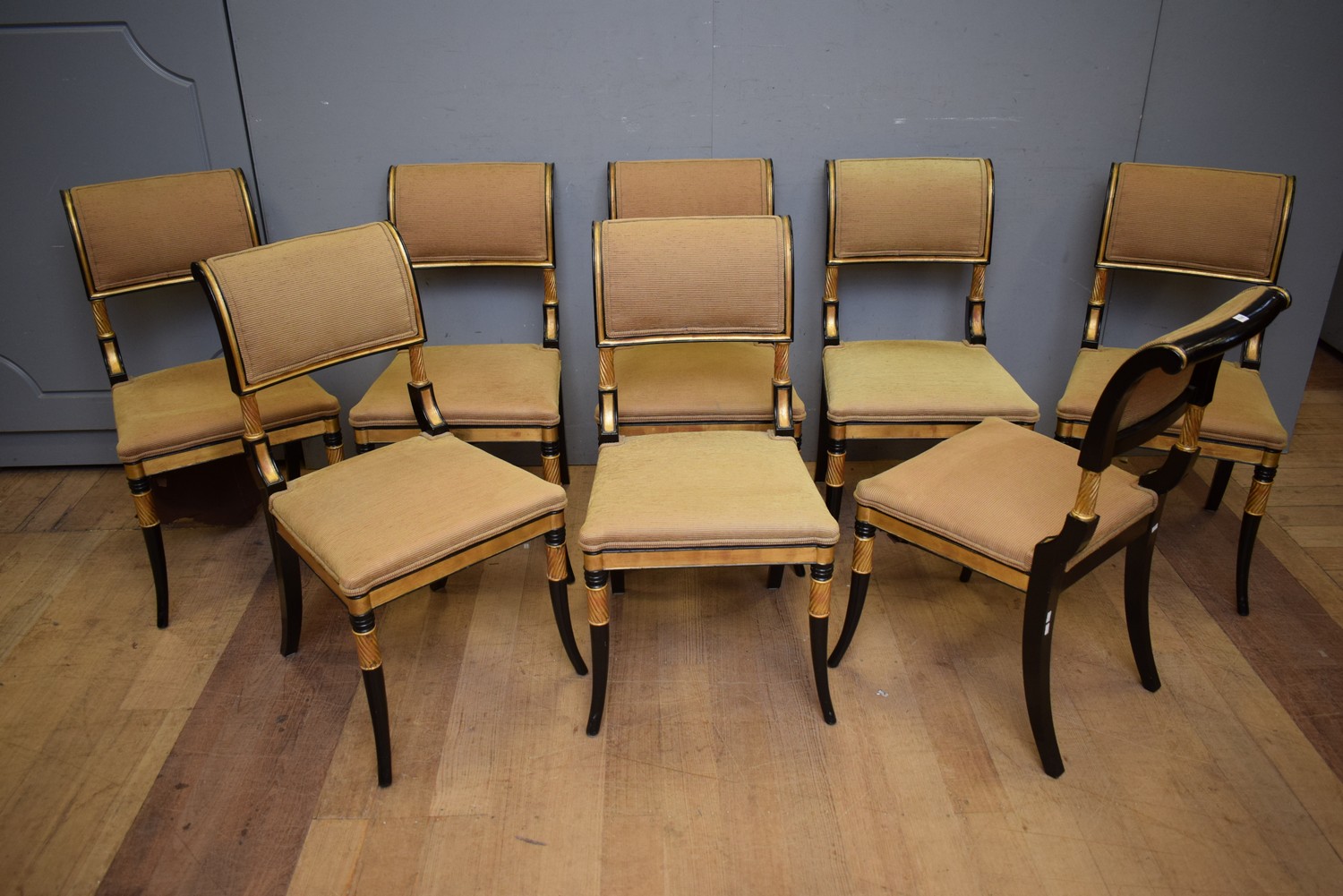 A SET OF EIGHT BLACK LACQUERED DINING CHAIRS (91H x 48W x 57D CM) (LEONARD JOEL DELIVERY SIZE: LARGE)