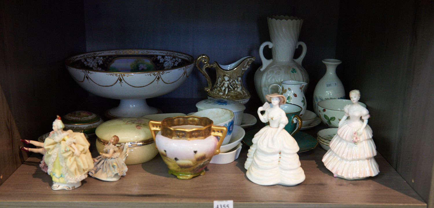 A SHELF OF ASSORTED CHINA INCLUDING WEDGWOOD, LEONARD JOEL LOCAL DELIVERY SIZE: SMALL
