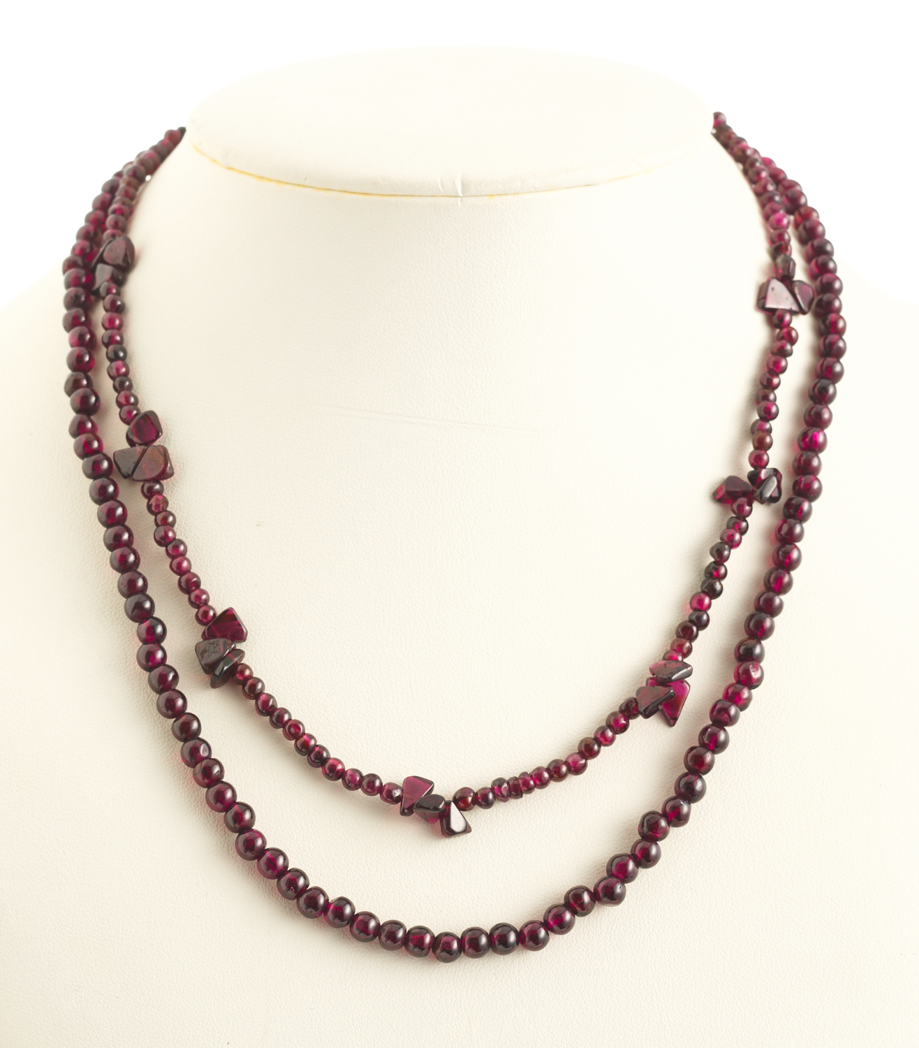 TWO ALMANDINE GARNET BEAD NECKLACES