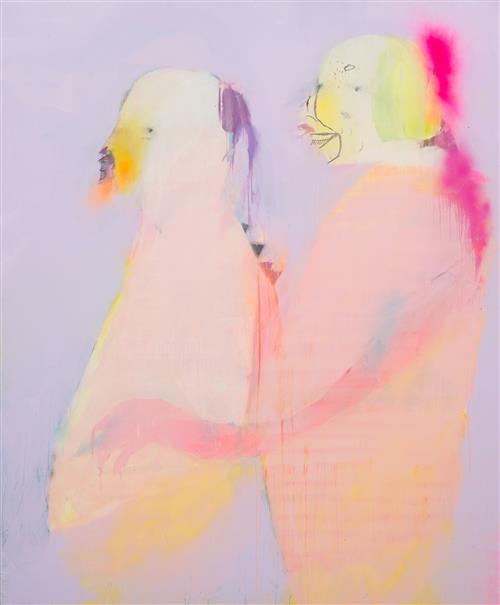 Work is in very good condition overall. The surface bears some light paint imperfections with one or two flyspots and one dot of black foreign paint located in the middle left region, along with a darker coloured paint spot located in the far right edge (approx. .5cm diameter). Work is stretched, however not framed.