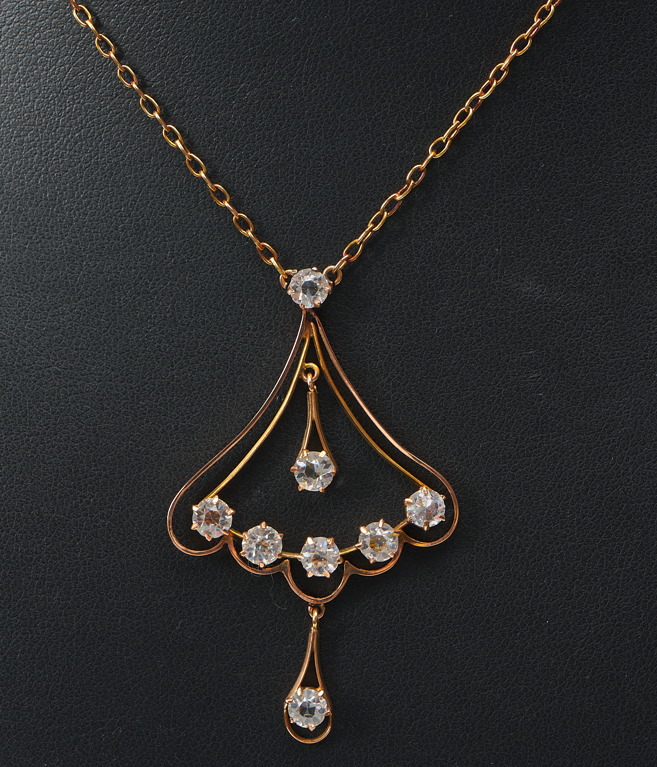 A PASTE SET PENDANT NECKLACE TESTED12CT GOLD, CIRCA 1910, 5.1GMS