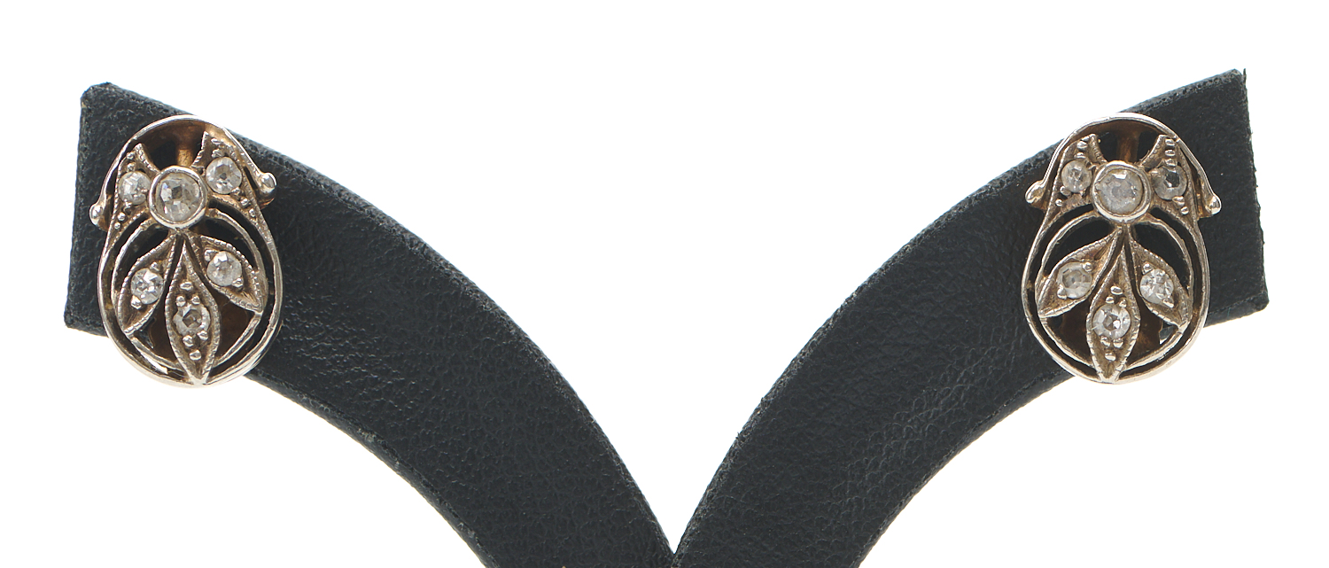 A PAIR OF FILIGREE DIAMOND EARRINGS IN TWO TONE 18CT GOLD, TO POST FITTINGS