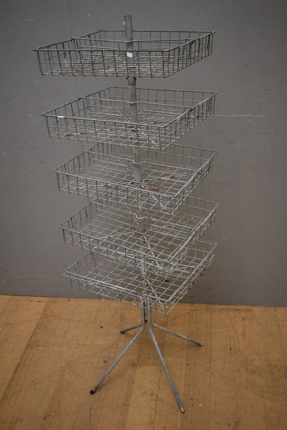 A GALVANISED STEEL WIRE FORM 5 TIER DISPLAY STAND (143H X 43W X 43D CM) (LEONARD JOEL DELIVERY SIZE: LARGE)