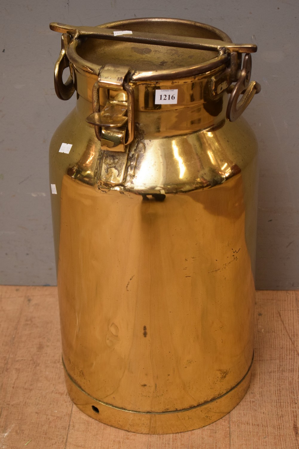 A 19TH CENTURY FRENCH BRASS MILK URN WITH LOCKING LID MECHANISM (50H X 28D CM) (LEONARD JOEL DELIVERY SIZE: MEDIUM)