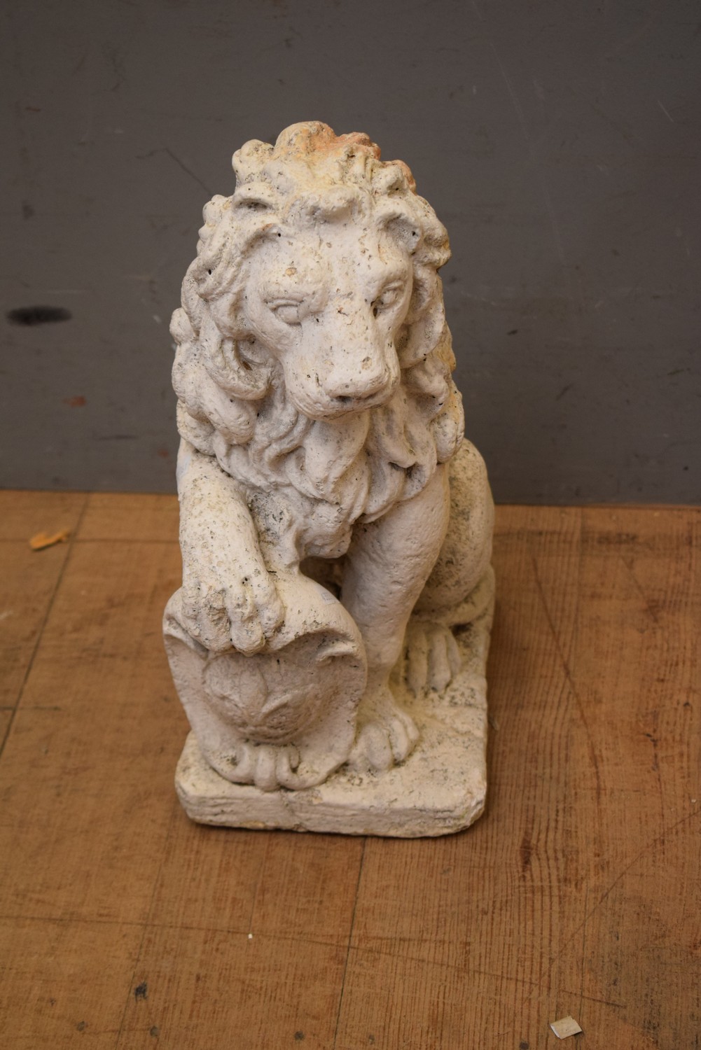 19TH CENTURY RECONSTITUTED STONE FRENCH LION FIGURE (42 CM H) (LEONARD JOEL DELIVERY SIZE: MEDIUM)