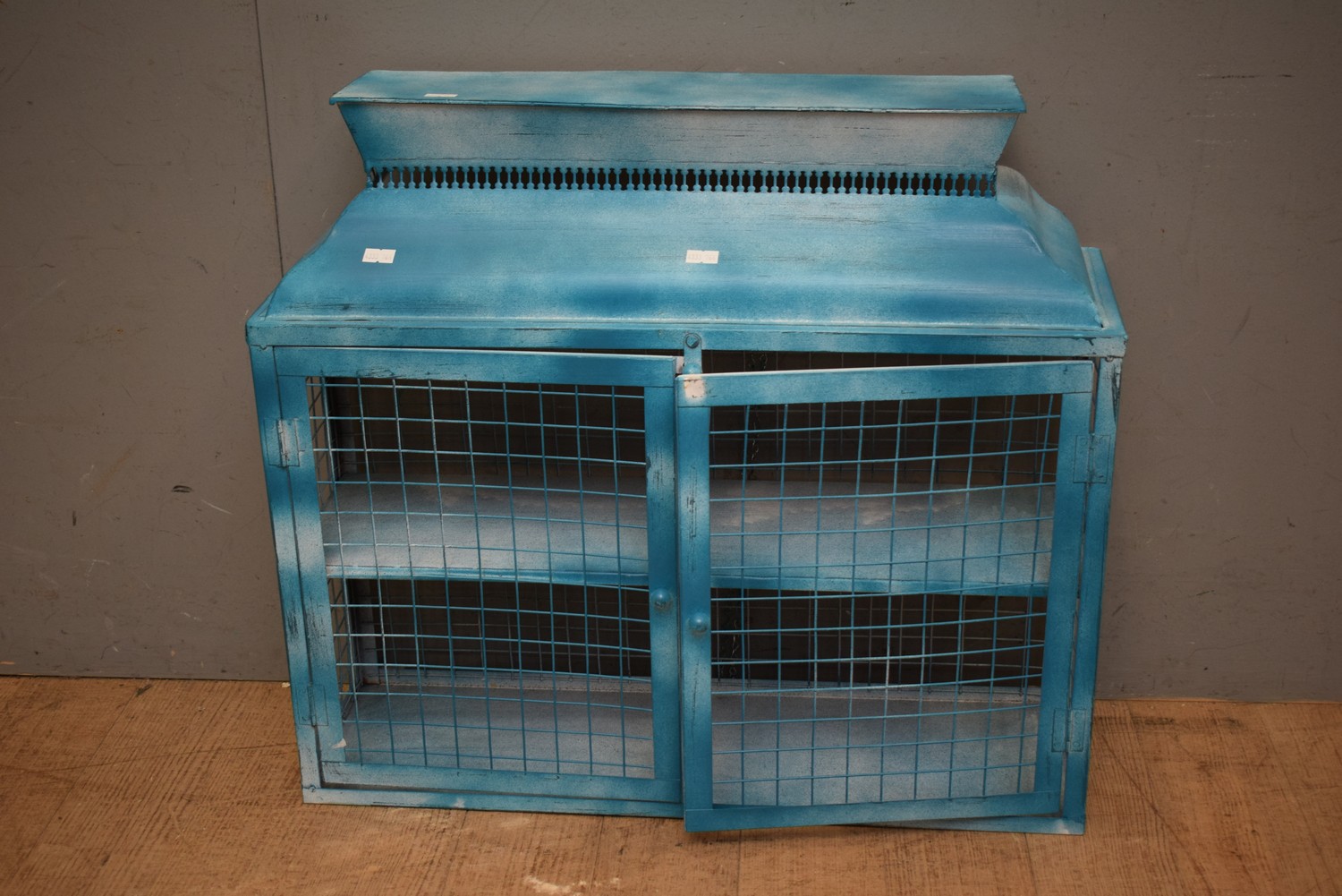 A CONTEMPORARY STEEL PAINTED BLUE WIRE FRONT DISPLAY CABINET (55H X 60W X 19D CM) (LEONARD JOEL DELIVERY SIZE: SMALL)