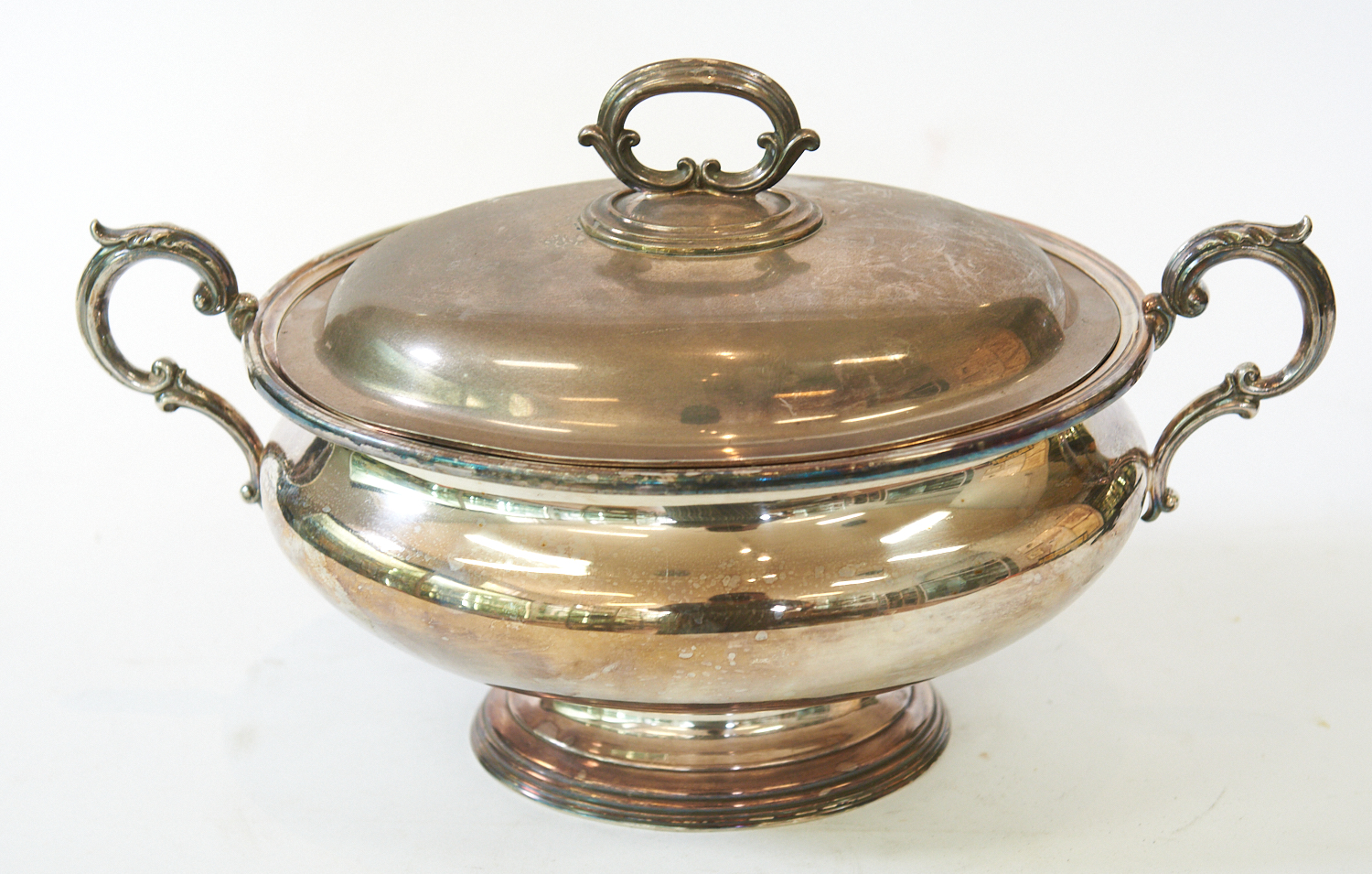 AN ELKINGTON SILVERPLATED SOUP TUREEN W.41CM, LEONARD JOEL LOCAL DELIVERY SIZE: SMALL