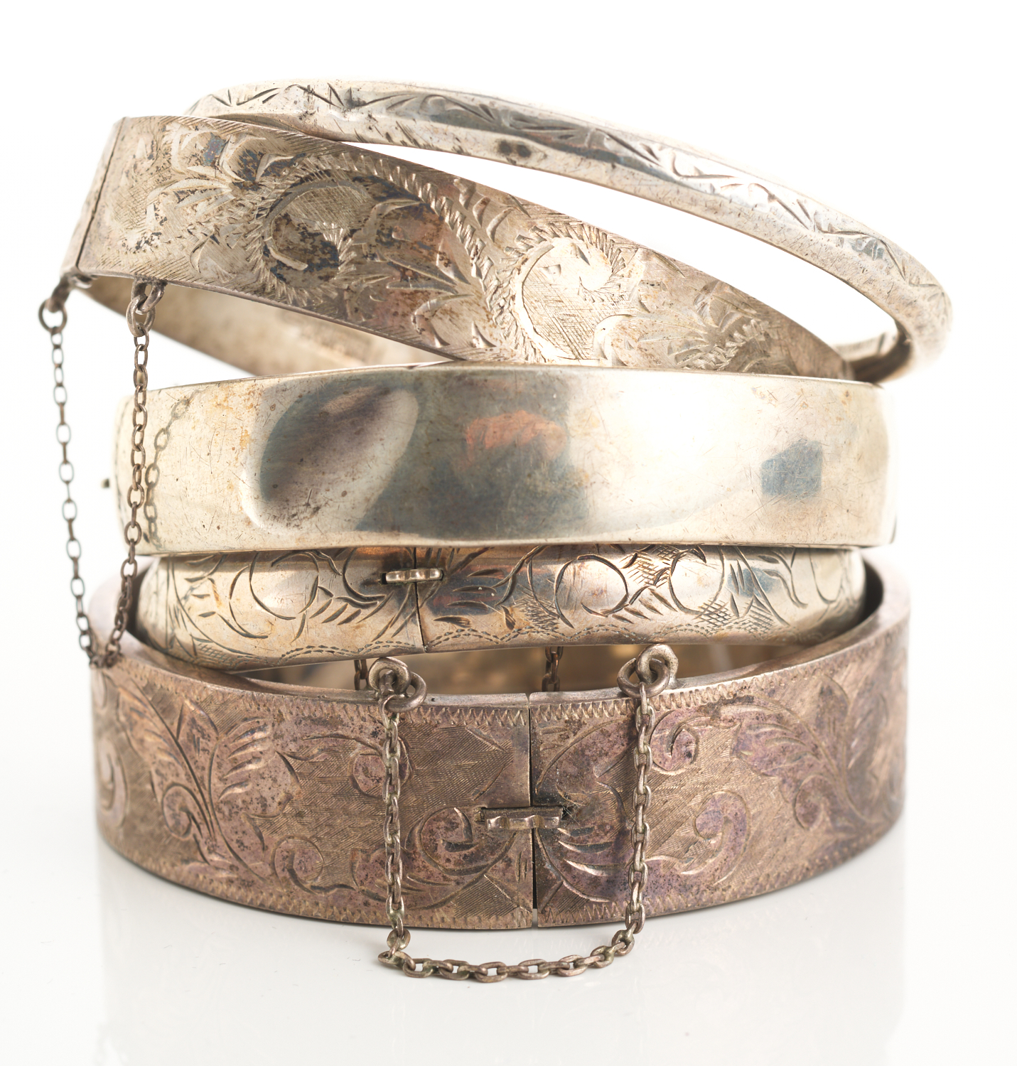 A SELECTION OF SILVER BANGLES, SOME HALLMARKED, A/F