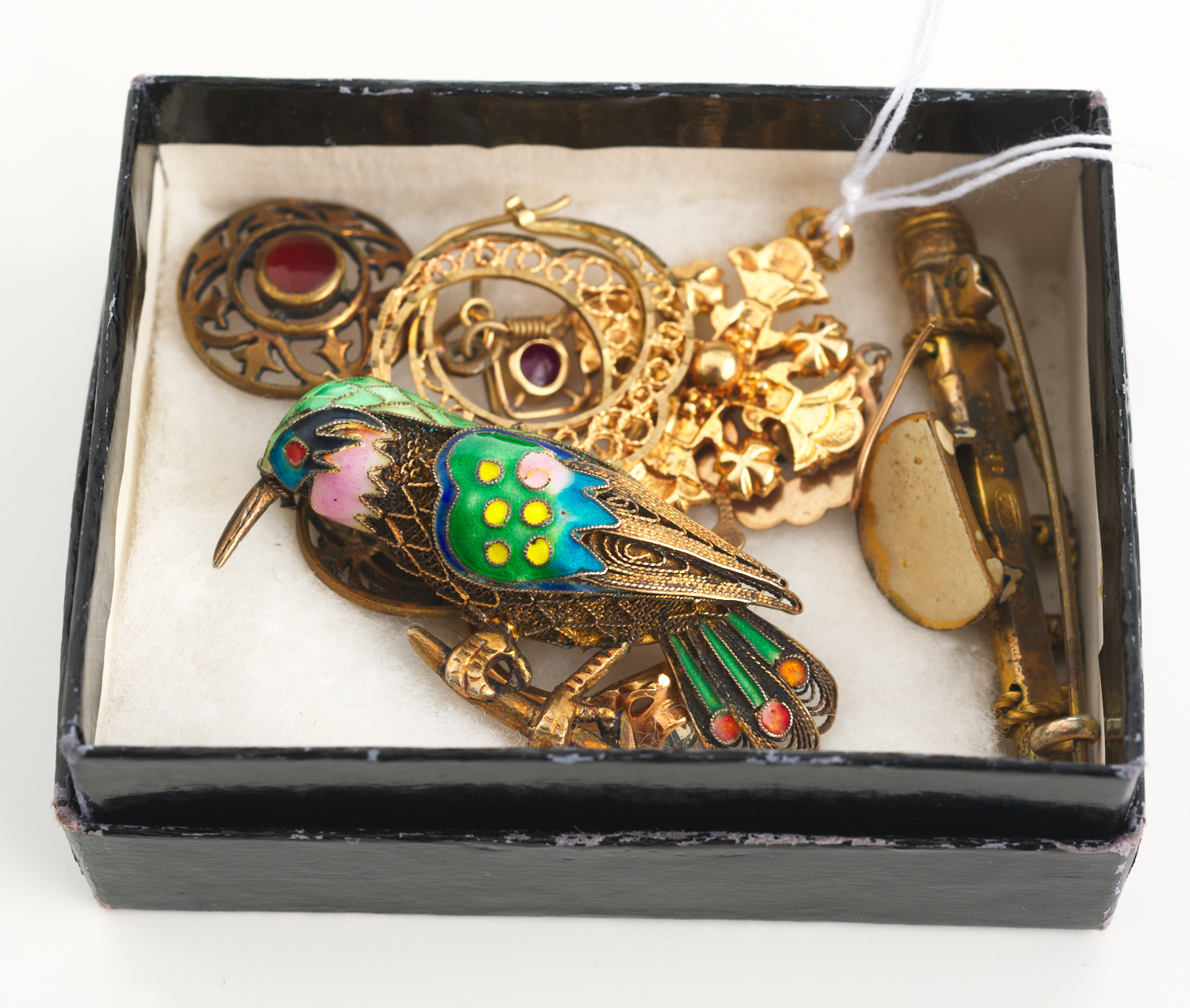 A SELECTION OF VINTAGE JEWELLERY INCLUDING 9CT AND 18CT GOLD