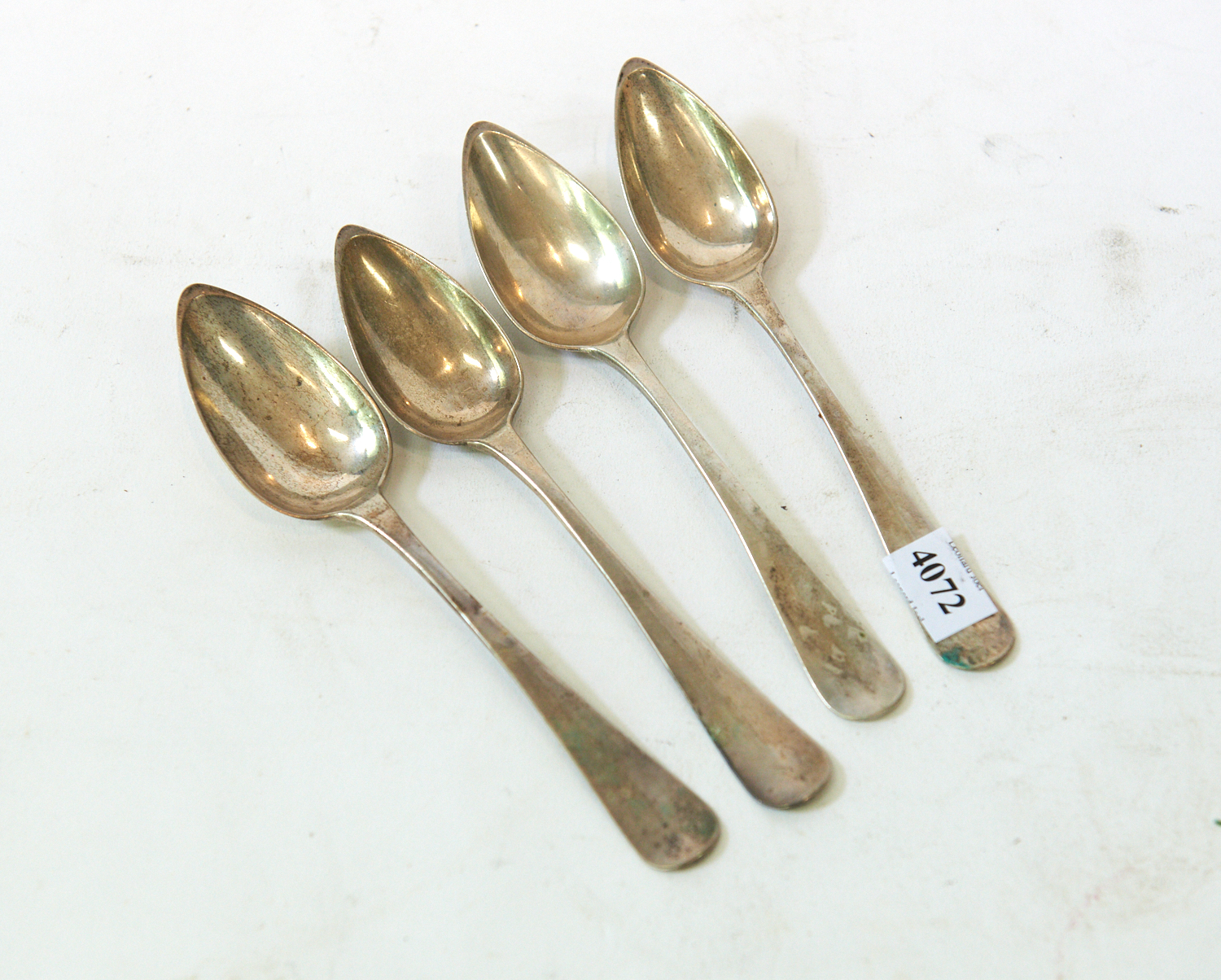FOUR DUTCH SILVER SPOONS, HALLMARKED, 170 GRAMS, LEONARD JOEL LOCAL DELIVERY SIZE: SMALL