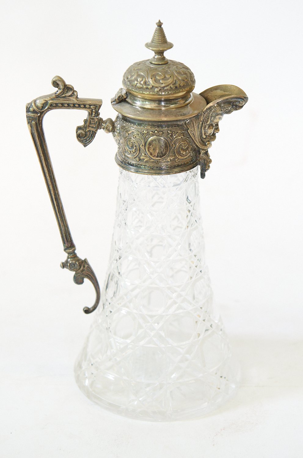 A CUT GLASS CLARET JUG WITH FIGURAL SPOUT (30 CM H), LEONARD JOEL LOCAL DELIVERY SIZE: SMALL