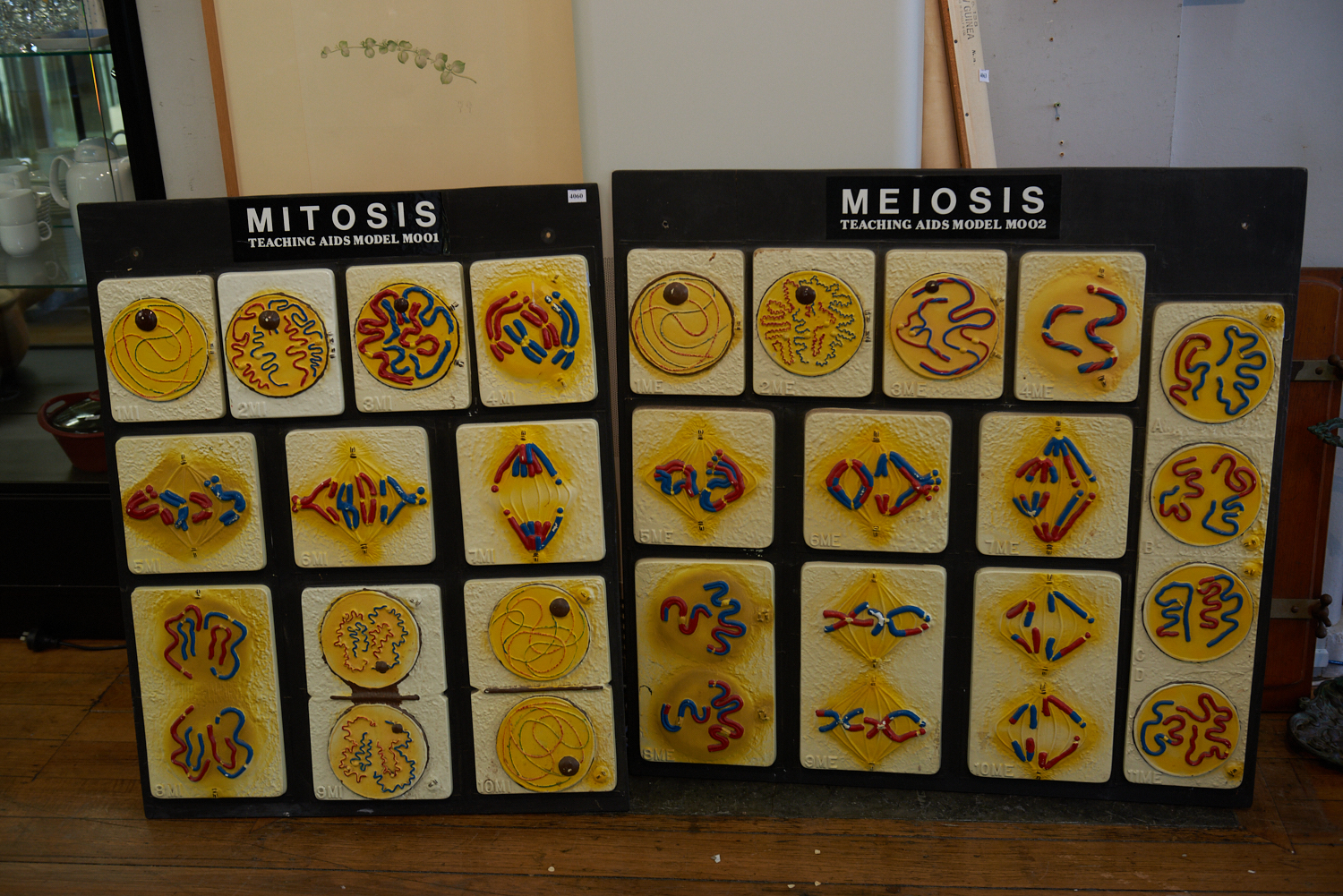TWO VINTAGE BIOLOGY DISPLAYS, MITOSIS AND MEIOSIS H.93CM, LEONARD JOEL LOCAL DELIVERY SIZE: MEDIUM