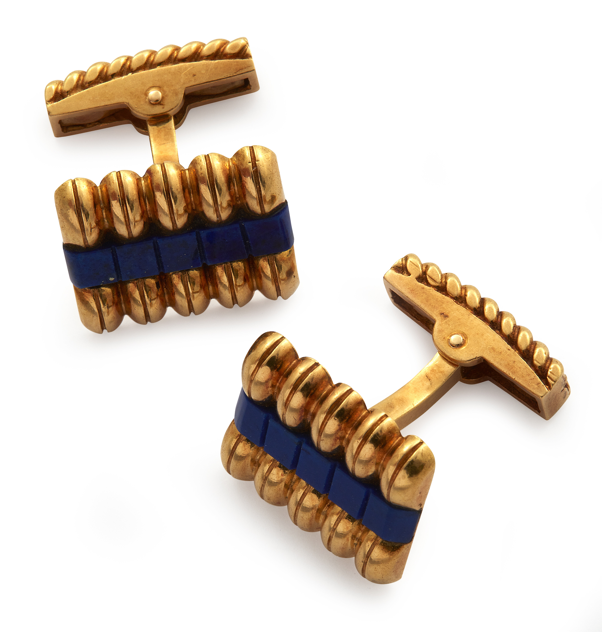 PAIR OF 18CT GOLD LAPIS LAZULI CUFFLINKS, TIFFANY & CO.