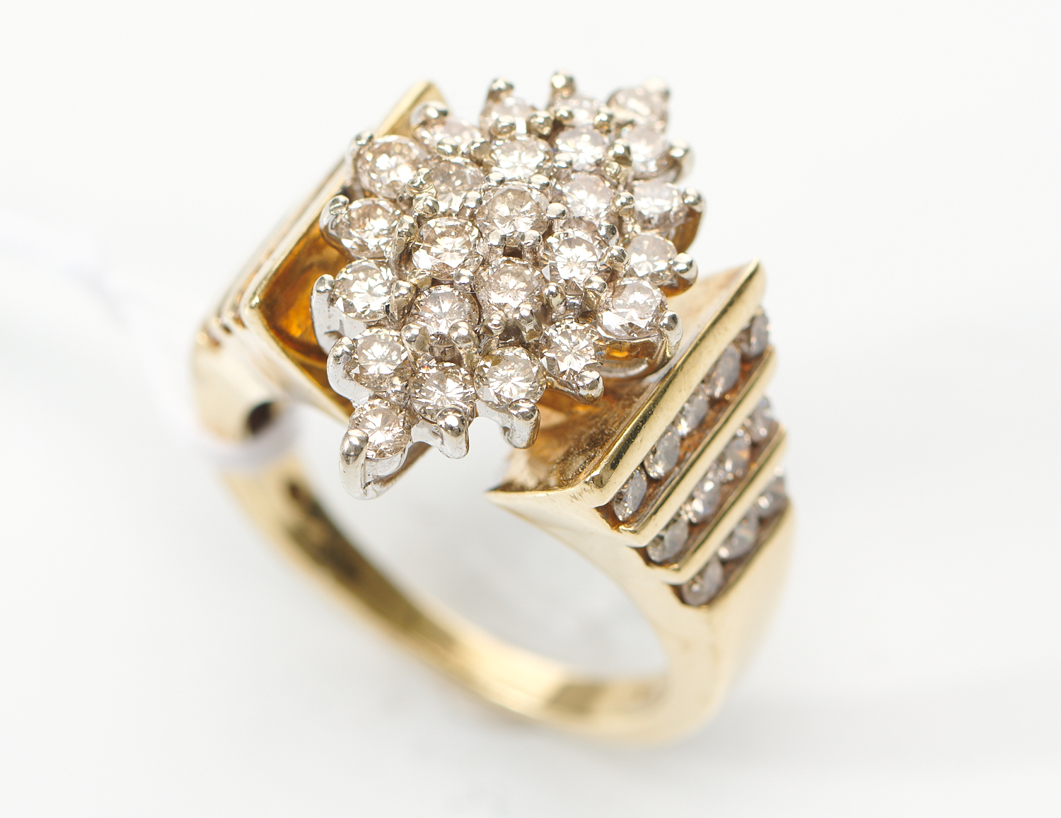 A DIAMOND DRESS RING IN 10CT GOLD, DIAMONDS TOTALLING AN ESTIMATED 2.09CT, RING SIZE N
