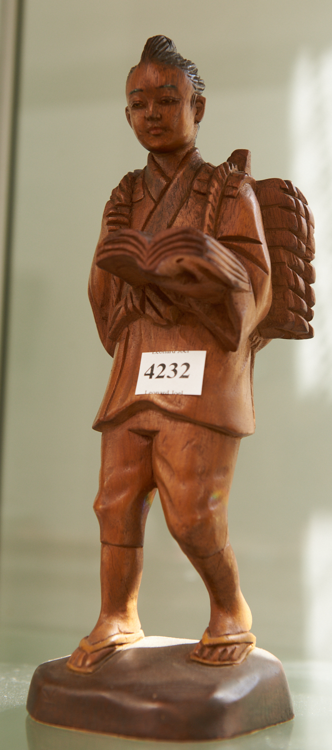 A WOODEN JAPANESE FIGURE H.25CM, LEONARD JOEL LOCAL DELIVERY SIZE: SMALL