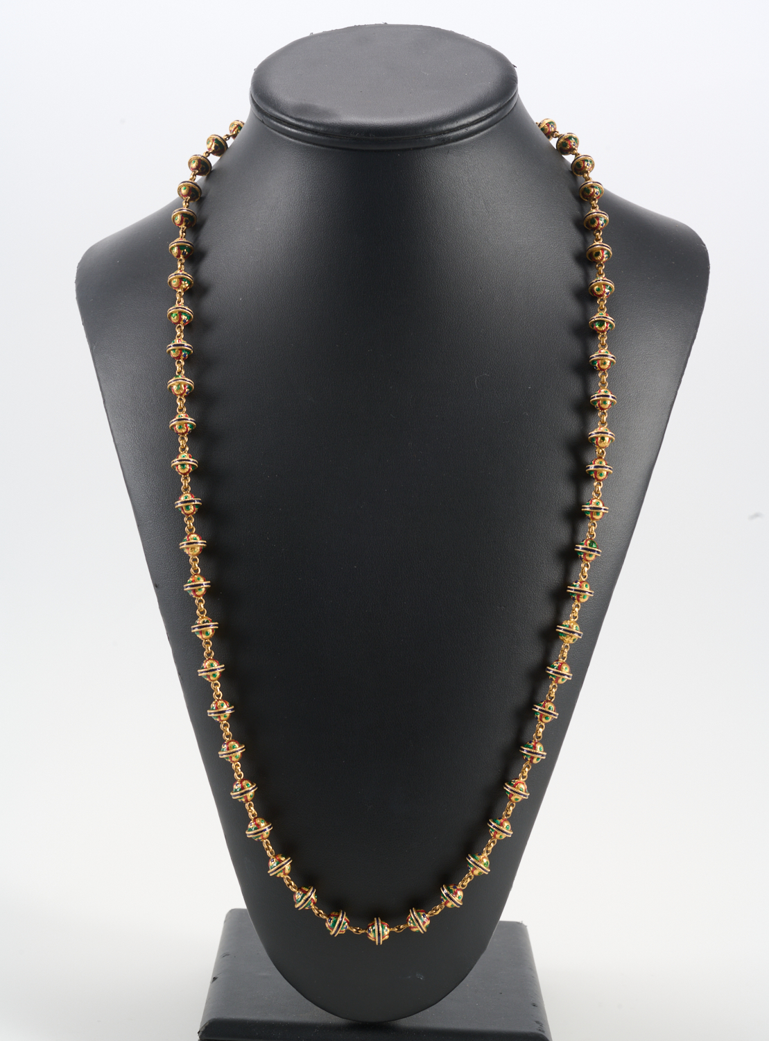 AN ENAMEL NECKLACE IN 20CT GOLD, LENGTH APPROCIMATELY 740MM