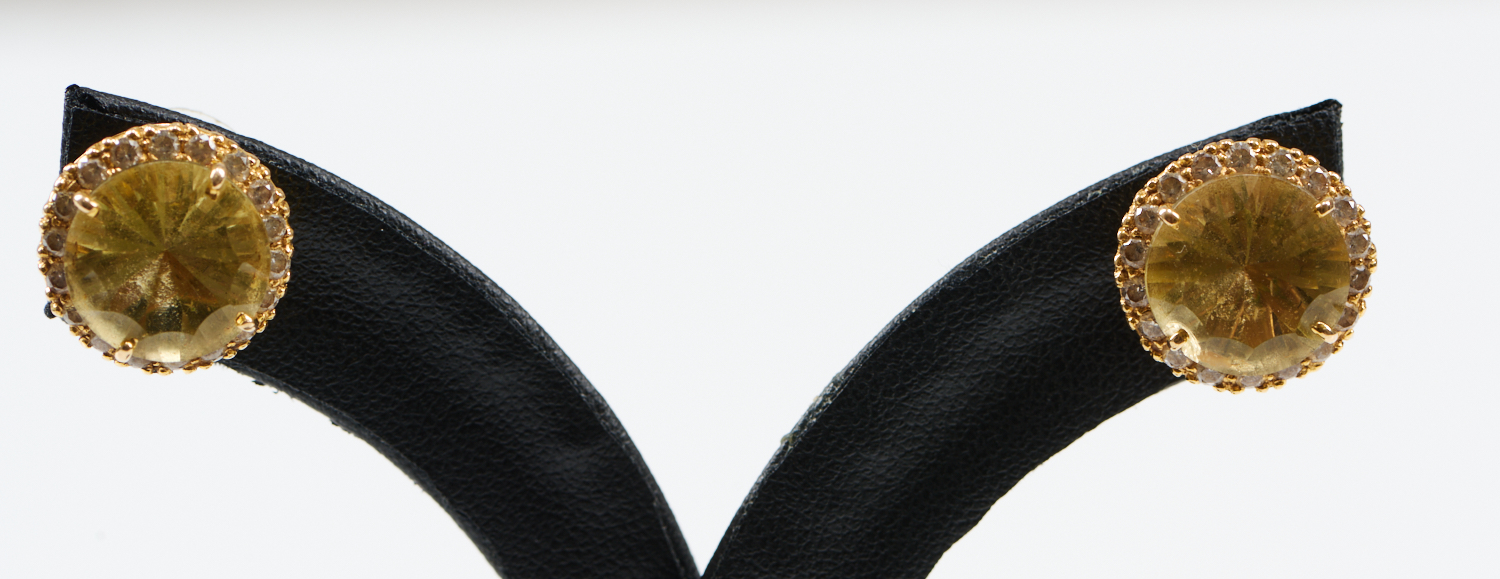 A PAIR OF LEMON QUARTZ AND DIAMOND EARRINGS IN 18CT GOLD TO SCREW BACK FITTINGS, DIAMETER 15MM, 7.80GMS