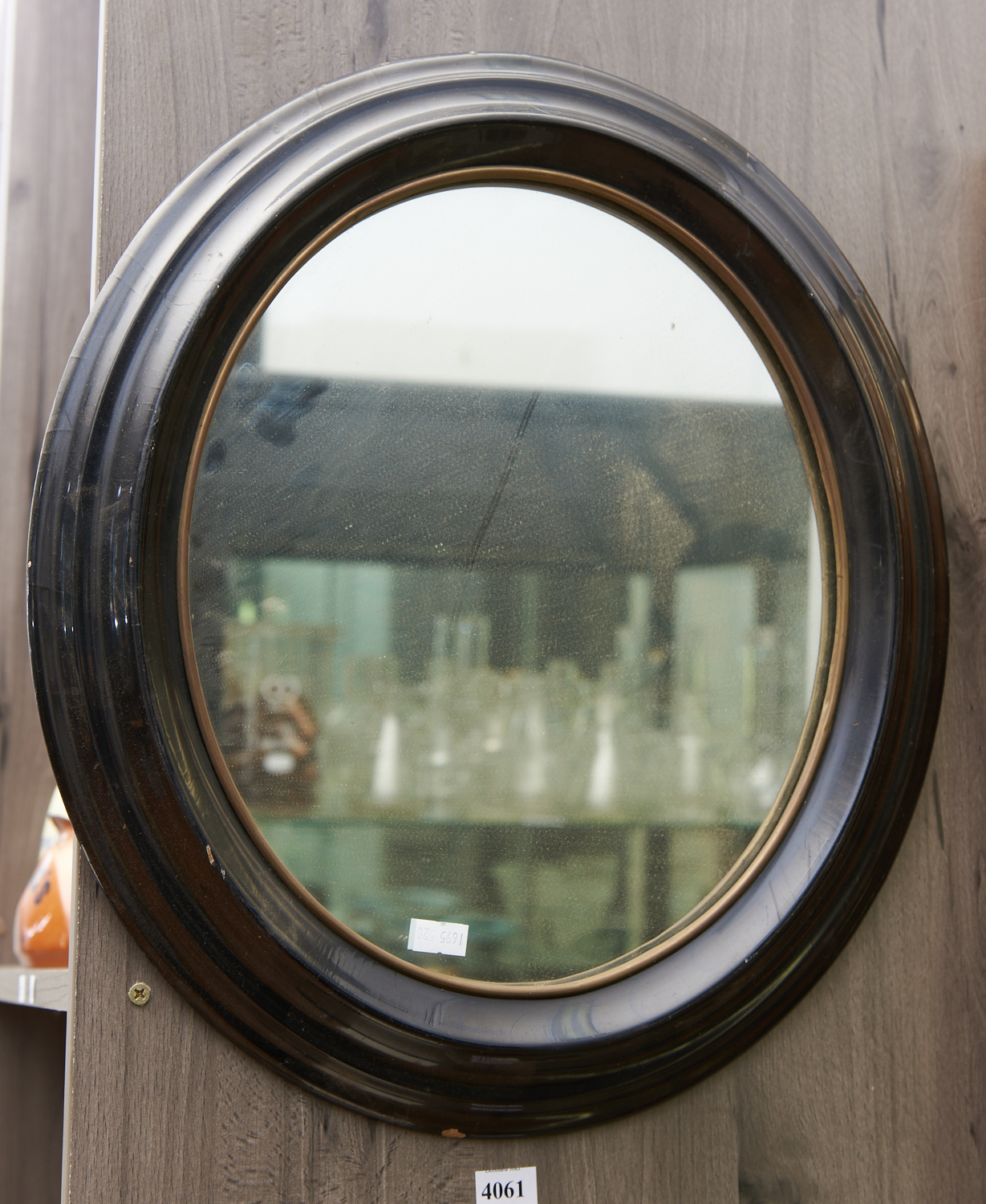 A 19TH CENTURY OVAL WALL MIRROR IN AN EBONISED AND GILT FRAME H.44CM, LEONARD JOEL LOCAL DELIVERY SIZE: SMALL. The Estate of Rodney Permezel.