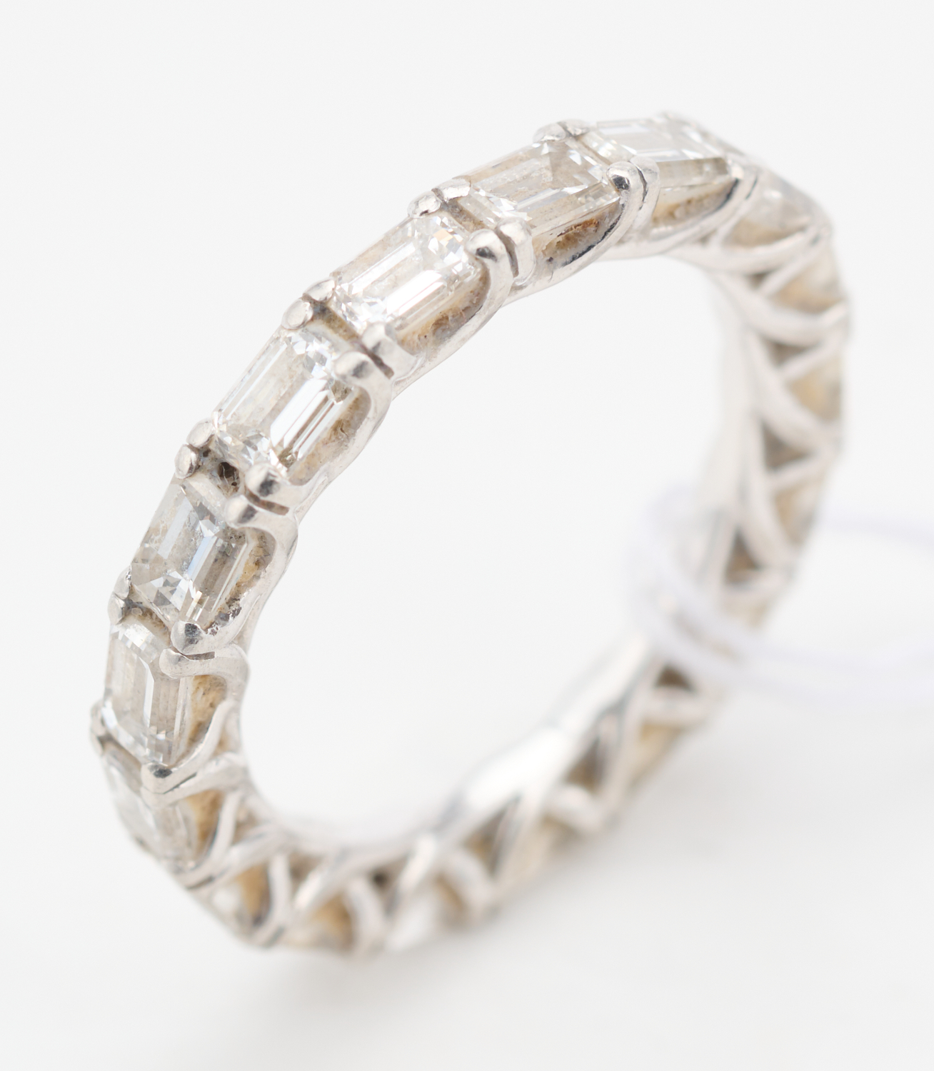 A DIAMOND BAGUETTE ETERNITY RING IN PLATINUM BY ANTON, RING SIZE K