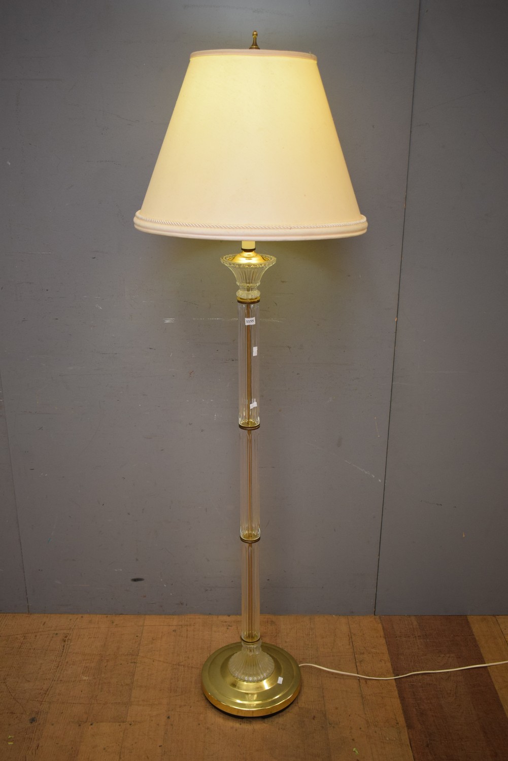 AN ITALIAN GLASS AND PERSPEX STANDARD LAMP WITH CANVAS SHADE (166H CM) (LEONARD JOEL DELIVERY SIZE: LARGE)