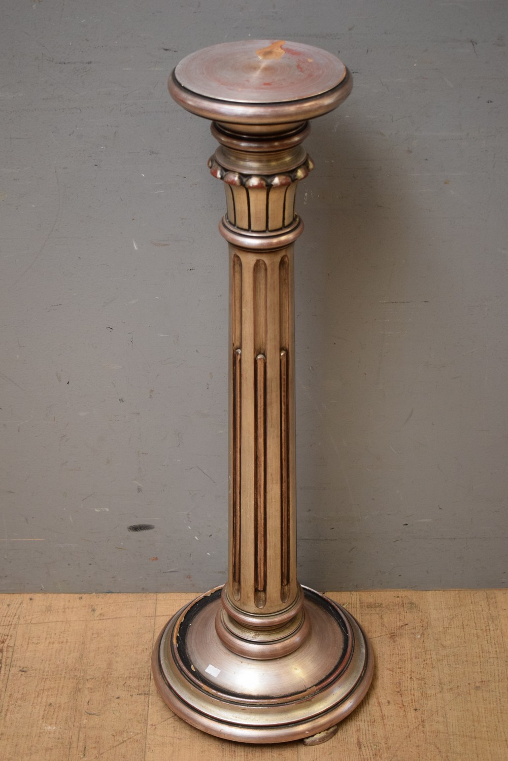 A SILVER PAINTED COLUMN PEDESTAL (A/F) (H94 CM) (LEONARD JOEL DELIVERY SIZE: MEDIUM)