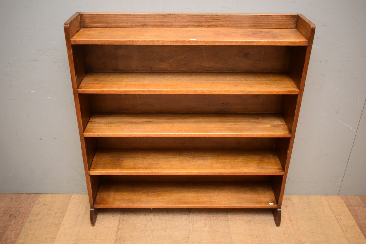 AN AUSTRALIAN HARDWOOD OPEN BOOKSHELF (A/F) (SPLIT TO LEG) (115H x 109W x 22D CM) (LEONARD JOEL DELIVERY SIZE: LARGE)