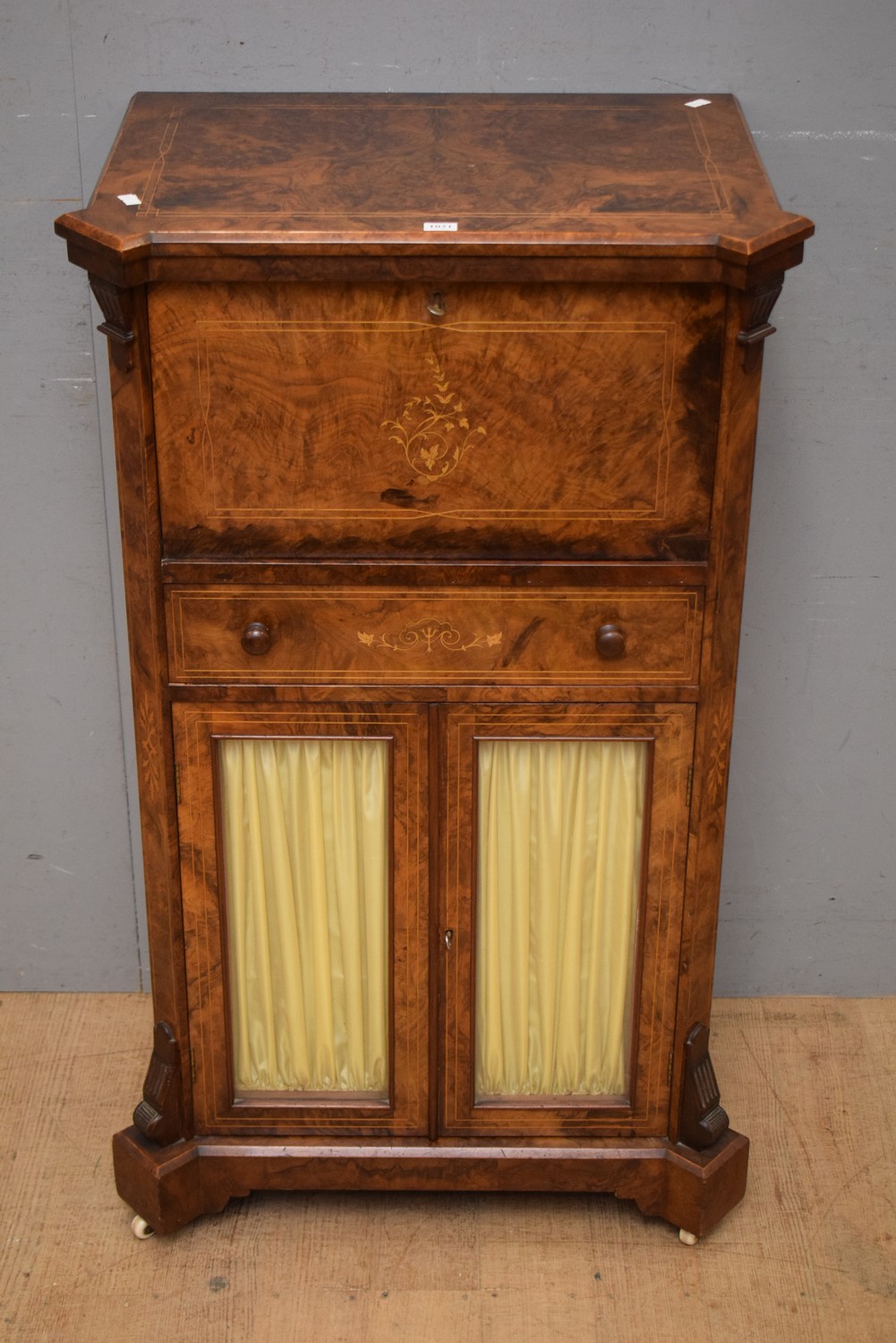 A BURR WALNUT TIMBER INLAID MUSIC CABINET (103H x 59WW x 41D CM) (LEONARD JOEL DELIVERY SIZE: LARGE)