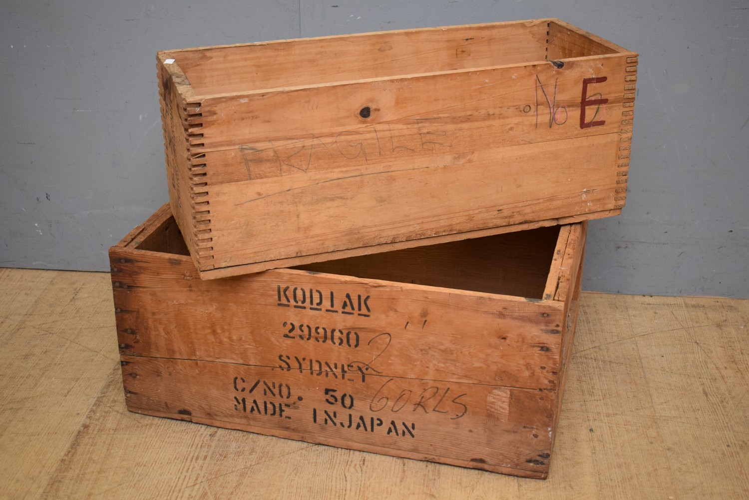 TWO TIMBER CRATES (H28 X W64 X D46 CM) (LEONARD JOEL DELIVERY SIZE: LARGE)