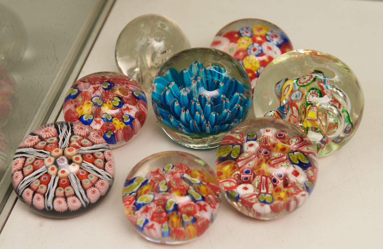 A GROUP OF GLASS PAPER WEIGHTS INCLUDING MILLEFIORI, LEONARD JOEL LOCAL DELIVERY SIZE: SMALL