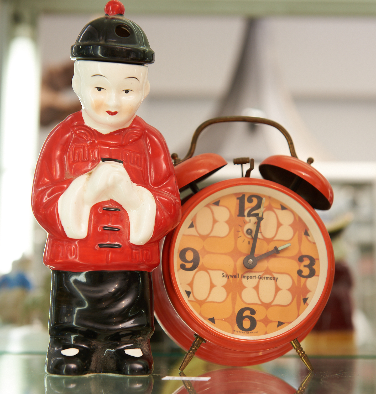 A CHINESE PORCELAIN FIGURE TOGETHER WITH GERMAN CLOCK (22 CM H), LEONARD JOEL LOCAL DELIVERY SIZE: SMALL
