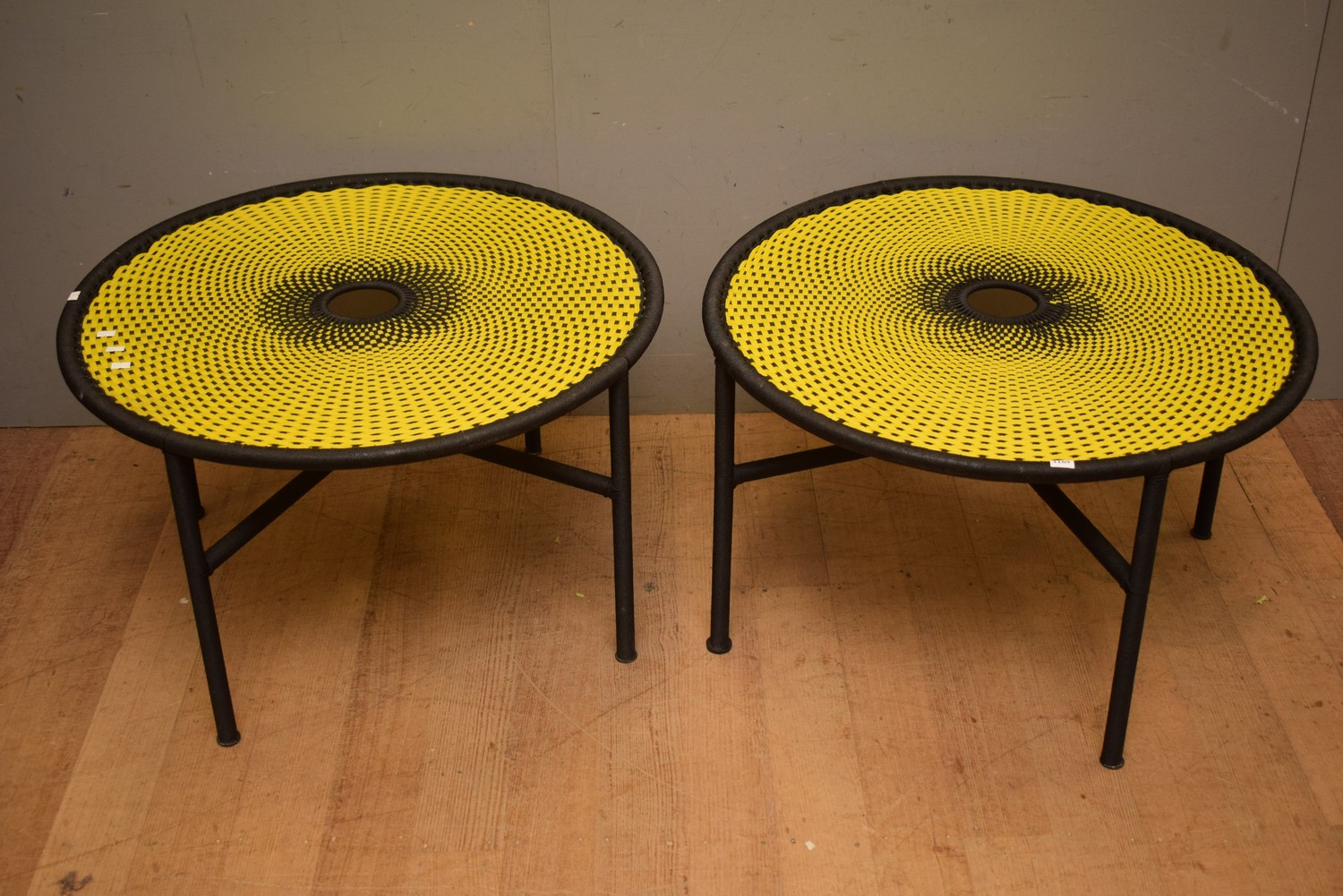 A PAIR OF COLOURFUL WOVEN COFFEE TABLES (46H x 75D CM) (LEONARD JOEL DELIVERY SIZE: LARGE)