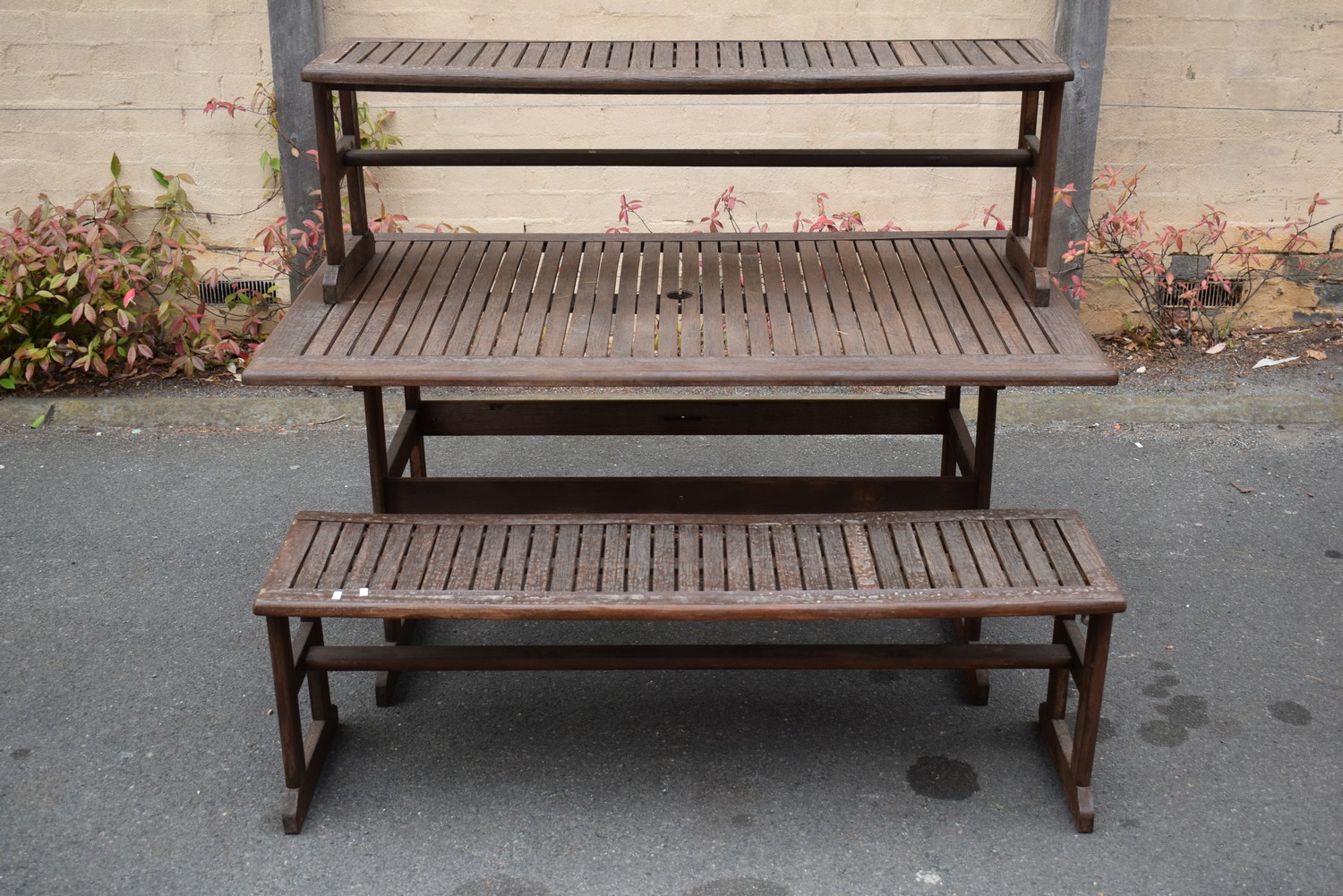 A THREE PIECE TEAK SETTING (A/F) (H72 X W150 X D91 CM) (LEONARD JOEL DELIVERY SIZE: LARGE)