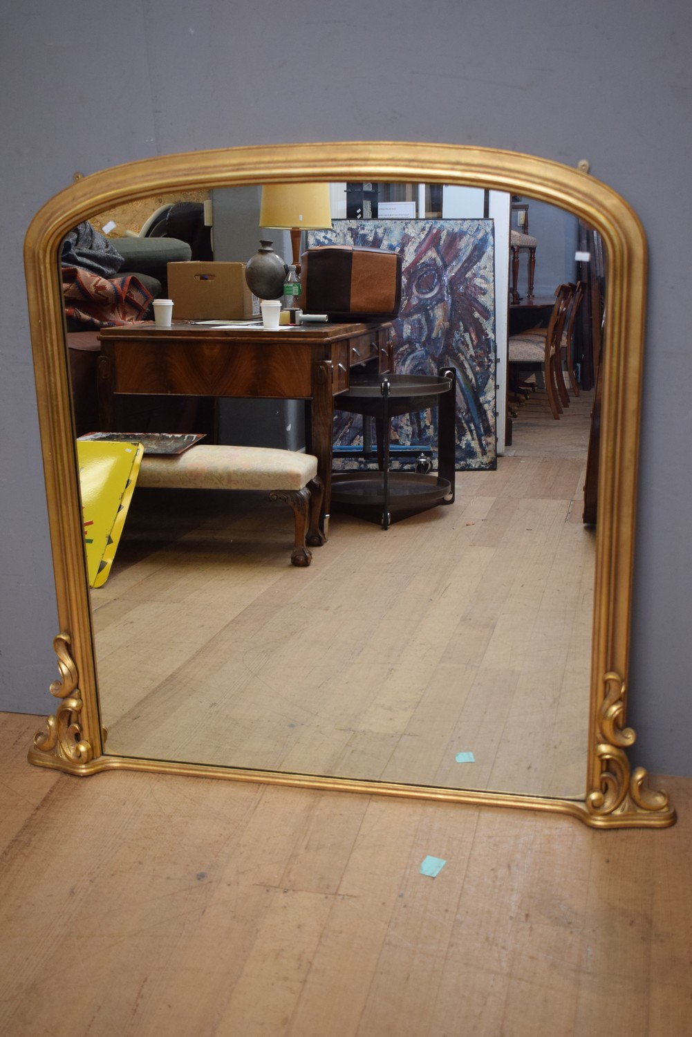 A GILT FRAMED OVERMANTLE MIRROR (122 X 129 CM) (LEONARD JOEL DELIVERY SIZE: LARGE)