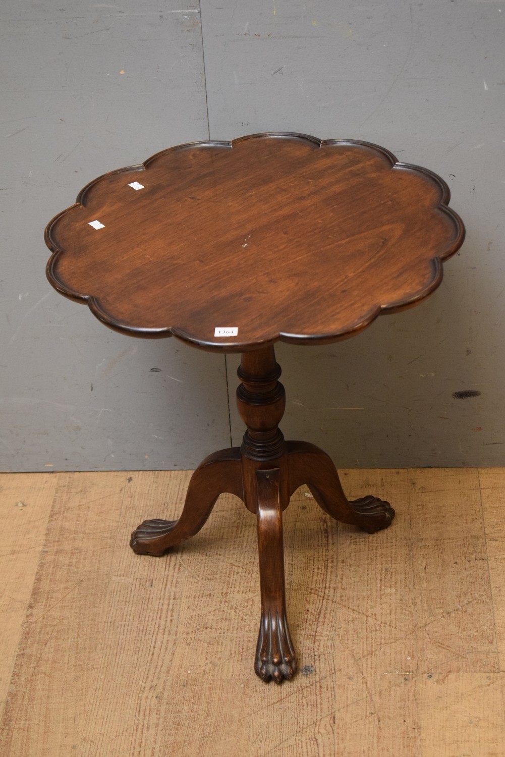 A SCALLOPED EDGE WINE TABLE (A/F BROKEN LEG) (H56 X D52 CM) (LEONARD JOEL DELIVERY SIZE: MEDIUM)