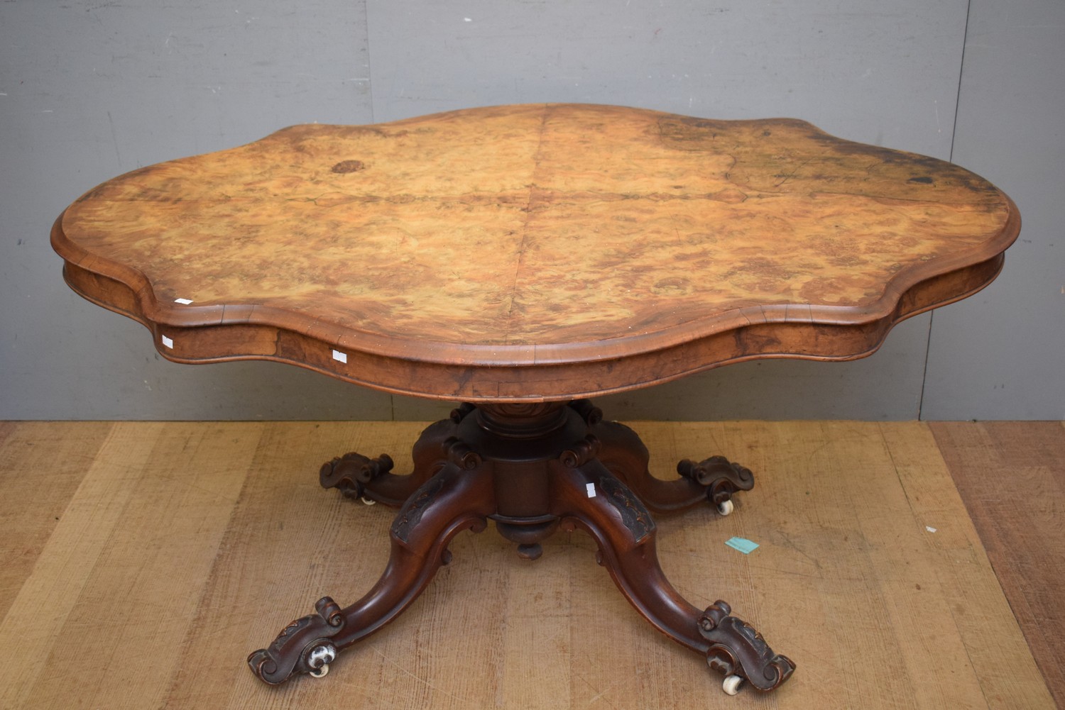 A VICTORIAN FLIP TOP LOO TABLE - MISSING PINS (A/F) (H75 X W144 X D108 CM) (LEONARD JOEL DELIVERY SIZE: LARGE)