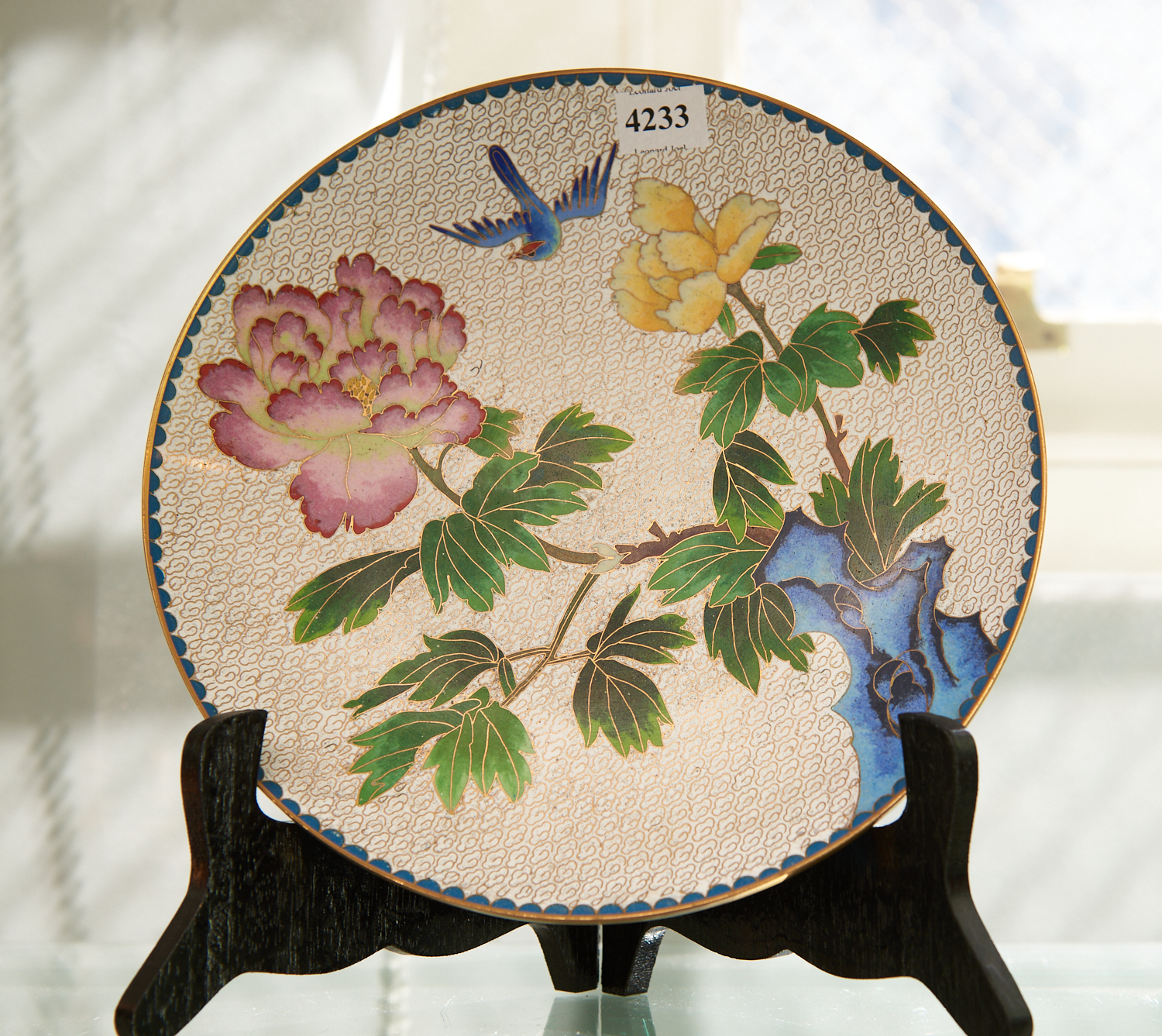 A CLOISONNE PLATE (23 CM D), LEONARD JOEL LOCAL DELIVERY SIZE: SMALL
