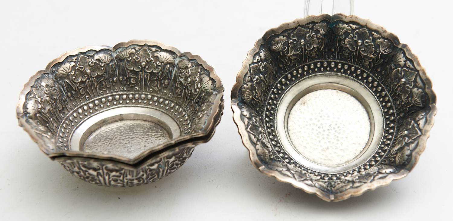 THREE INDONESIAN DJOKIA 800 SILVER BOWLS (13 CM D), LEONARD JOEL LOCAL DELIVERY SIZE: SMALL