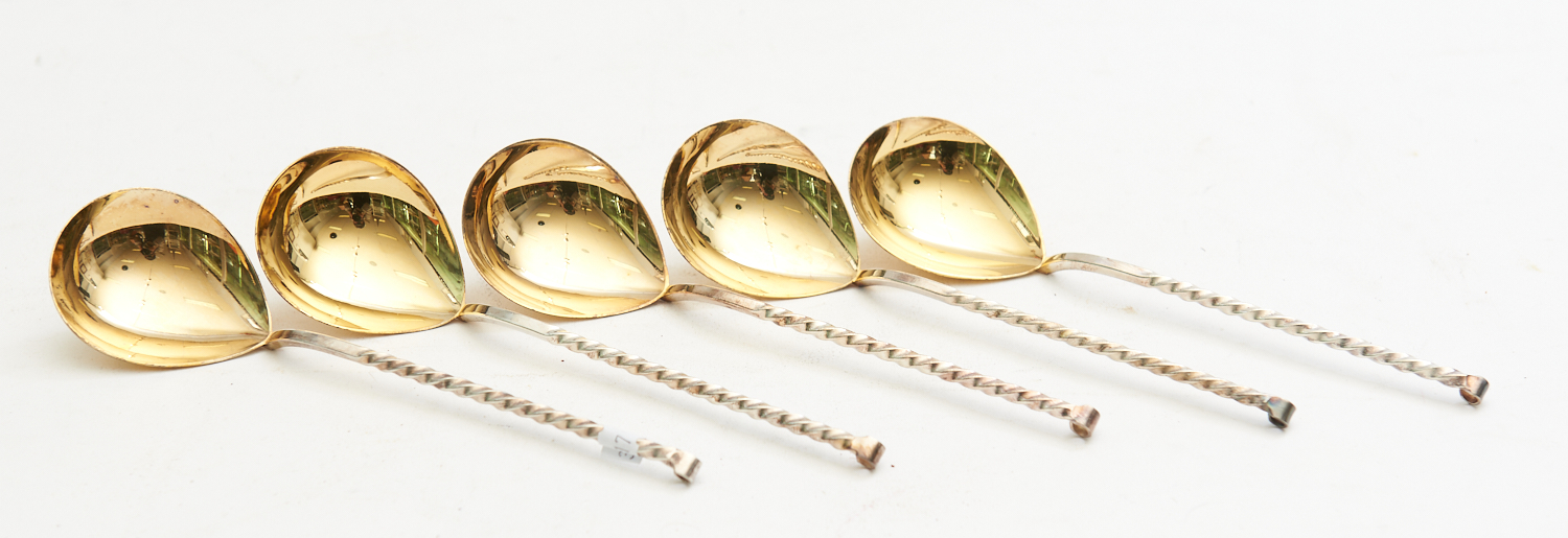 A GROUP OF FIVE RUSSIAN JAM SPOONS, LEONARD JOEL LOCAL DELIVERY SIZE: SMALL
