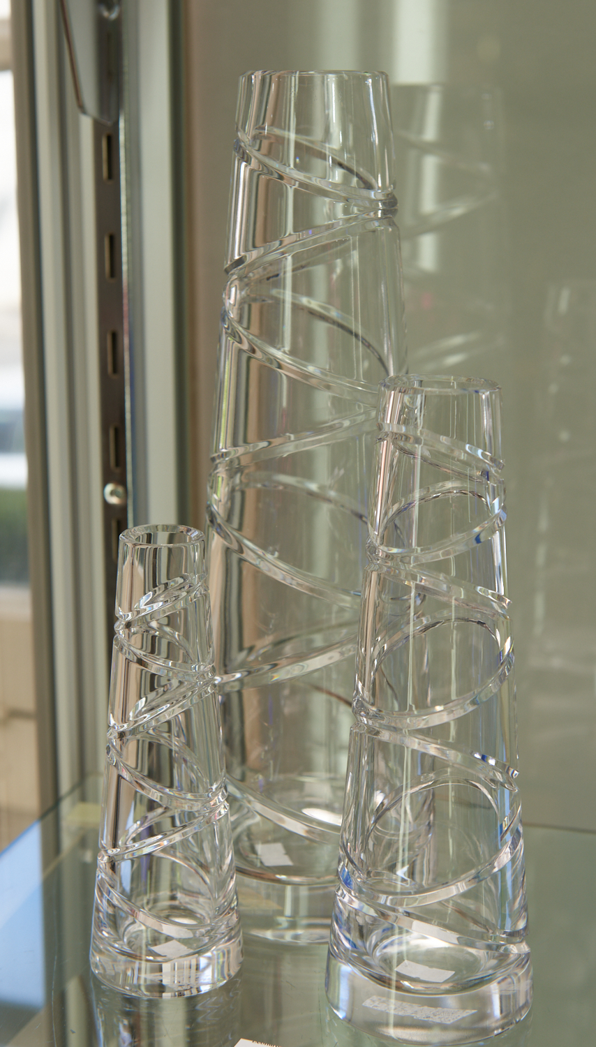THREE WATERFORD AURA VASES BY JASPER CONRAN (30 CM HIGHEST), LEONARD JOEL LOCAL DELIVERY SIZE: SMALL