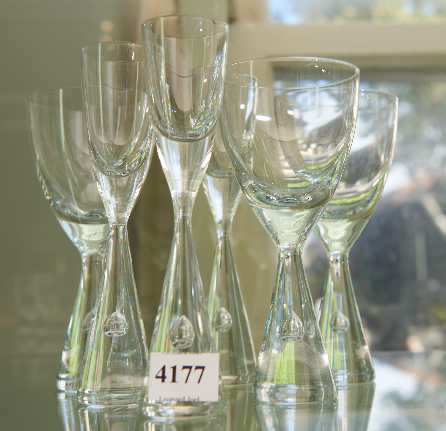 SIX DANISH HOLMEGAARD PRINCESS APERITIF GLASSES BY BENT SEVERIN, LEONARD JOEL LOCAL DELIVERY SIZE: SMALL