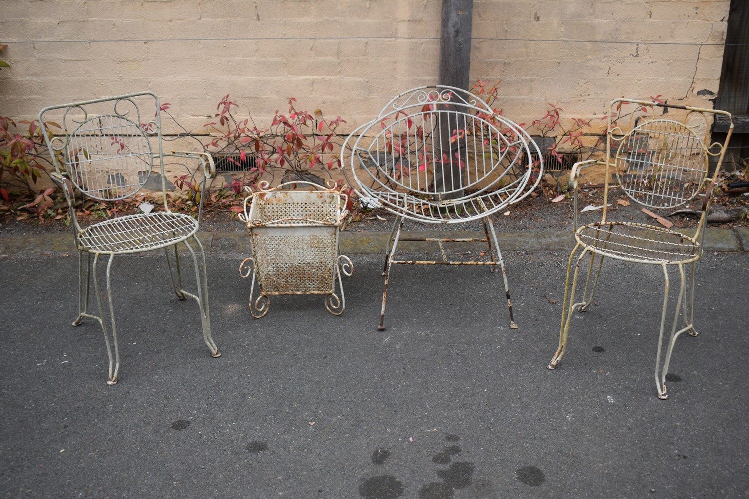 A COLLECTION OF FOUR METAL OUTDOOR PIECES (A/F) (H55 X W36 X D46 CM) (LEONARD JOEL DELIVERY SIZE: LARGE)