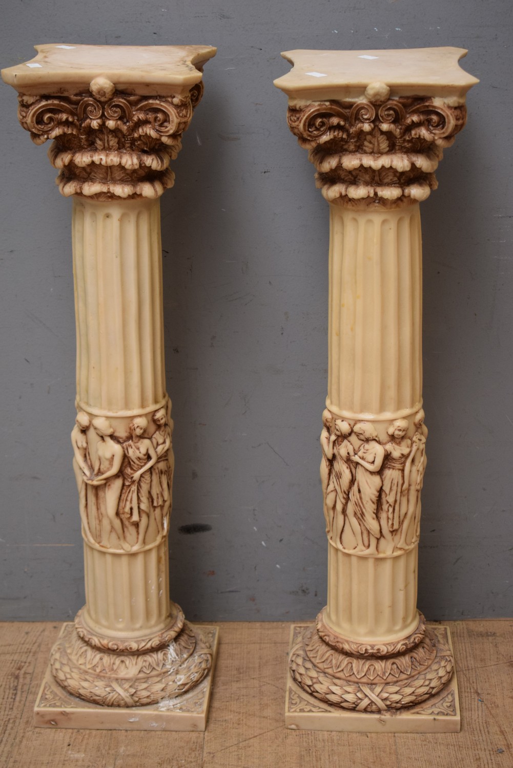 A PAIR OF CLASSICAL STYLE COMPOSITE COLUMNS (H74 CM) (LEONARD JOEL DELIVERY SIZE: MEDIUM)