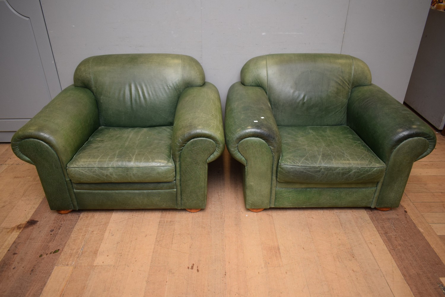 A PAIR OF MORGAN FURNITURE NEWBUCK LEATHER CLUB CHAIRS, U.K. (82H x 129W x 97D CM) (PLEASE NOTE THIS HEAVY ITEM MUST BE REMOVED BY CARRIERS AT THE CUSTOMER'S EXPENSE. LEONARD JOEL STAFF CANNOT ASSIST CARRYING THIS ITEM) (X-LARGE ITEM)