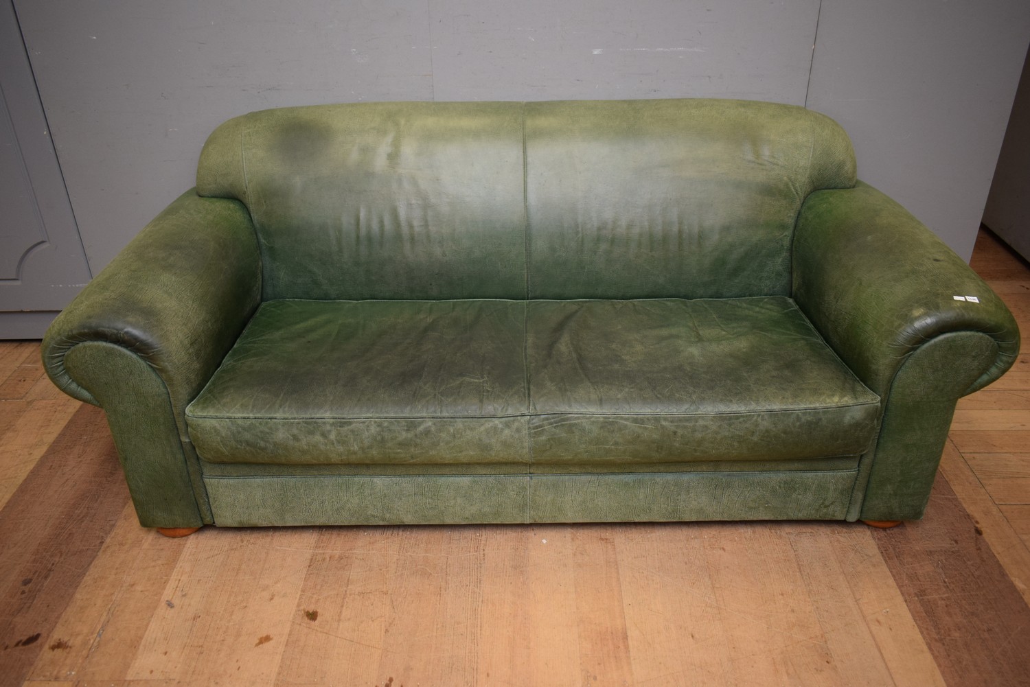 A THREE SEATER MORGAN FURNITURE NEWBUCK LEATHER SOFA, UK (86H x 217W x 98D CM) (PLEASE NOTE THIS HEAVY ITEM MUST BE REMOVED BY CARRIERS AT THE CUSTOMER'S EXPENSE. LEONARD JOEL STAFF CANNOT ASSIST CARRYING THIS ITEM) (X-LARGE ITEM)