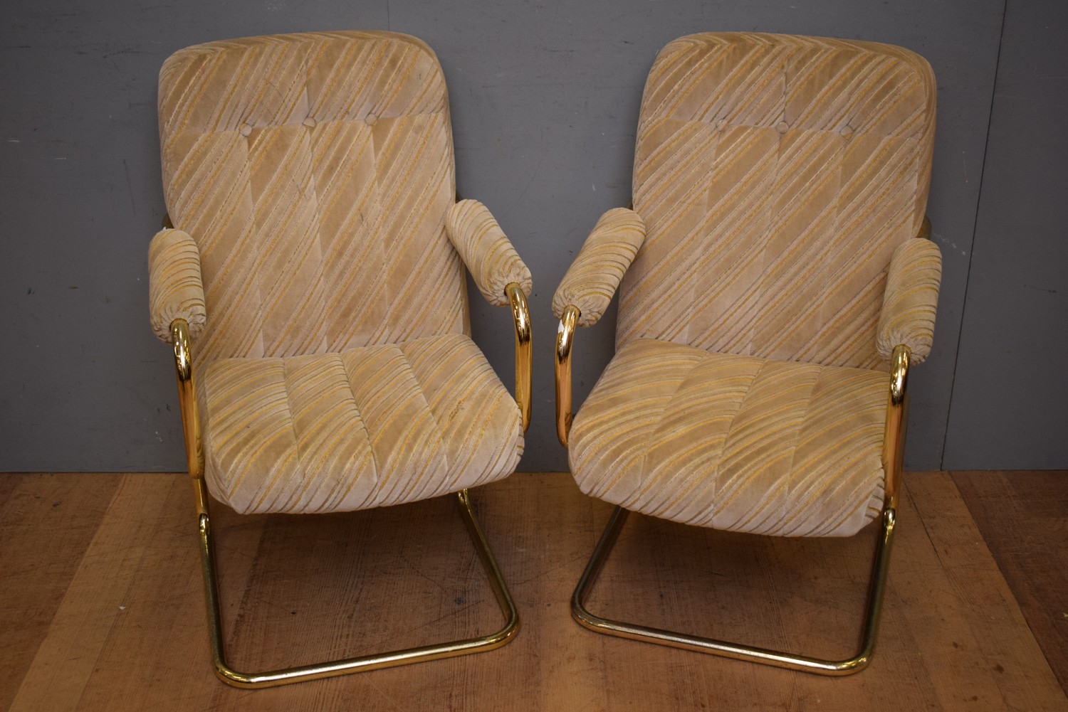 A PAIR OF HOLLYWOOD REGENCY CANTELEVER ARMCHAIRS (A/F) (H92 X W58 X D73 CM) (LEONARD JOEL DELIVERY SIZE: LARGE)