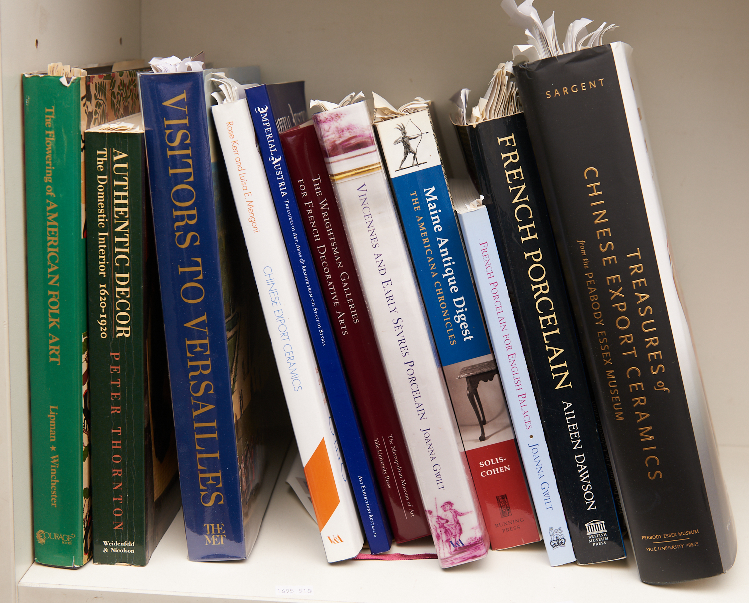 A SHELF OF BOOKS ON ANTIQUES, LEONARD JOEL LOCAL DELIVERY SIZE: SMALL The Estate of Rodney Permezel.